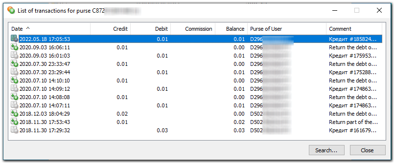 - open the transaction history of the C-purse.